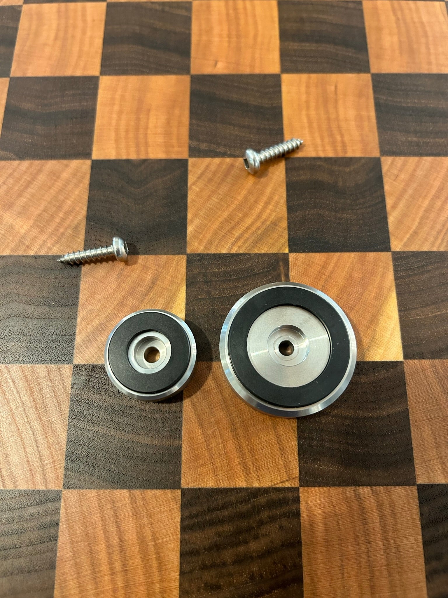 Take your cutting and charcuterie boards to the next level with these high quality brass and stainless steel feet. Fitted with a non slip, polymer insert to keep your board secure. Recommend to drill a pilot hole for the m8 screws.
