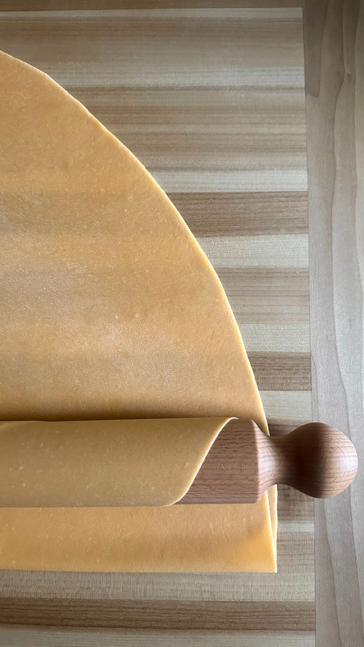 Just what's needed to get started with homemade pasta & pastry! Existing kitchen countertops and most tables just don't cut it. This tagliere board is plus sized to give yourself the room needed. Made from solid Poplar, this is not some cheap piece of plywood. Non slip feet underneath, to keep weight even and still.