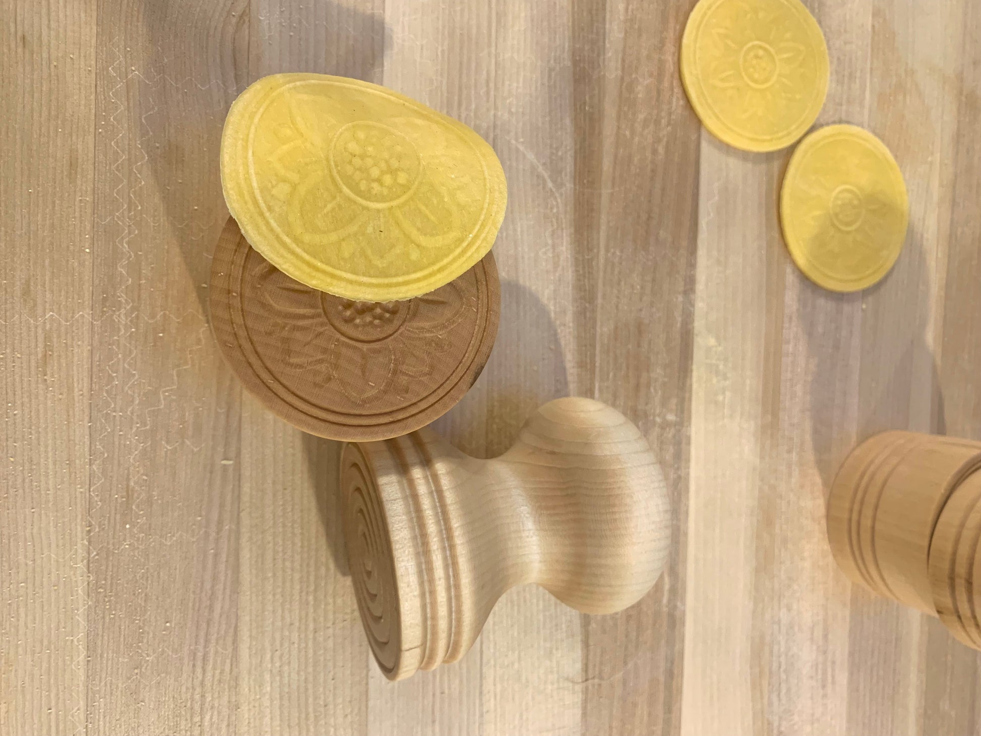 Traditional corzetti stamp, 100% handmade and lathe turned from solid maple.